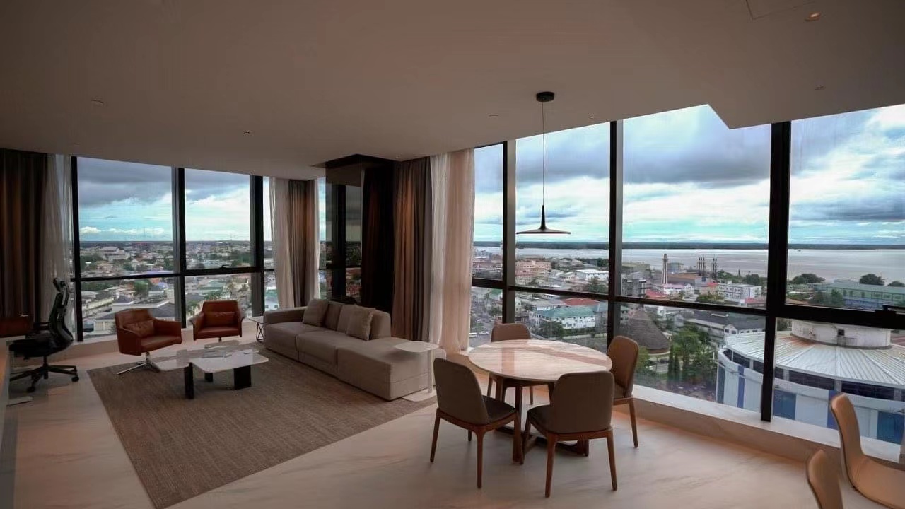 2022年7月底,在南美洲北部的圭亞那首都喬治敦市,面朝大西洋,一個(gè)采用綠色理念設(shè)計(jì)的地標(biāo)性建筑,飛馬酒店,在眾人期待中順利交付并舉行開(kāi)業(yè)典禮。